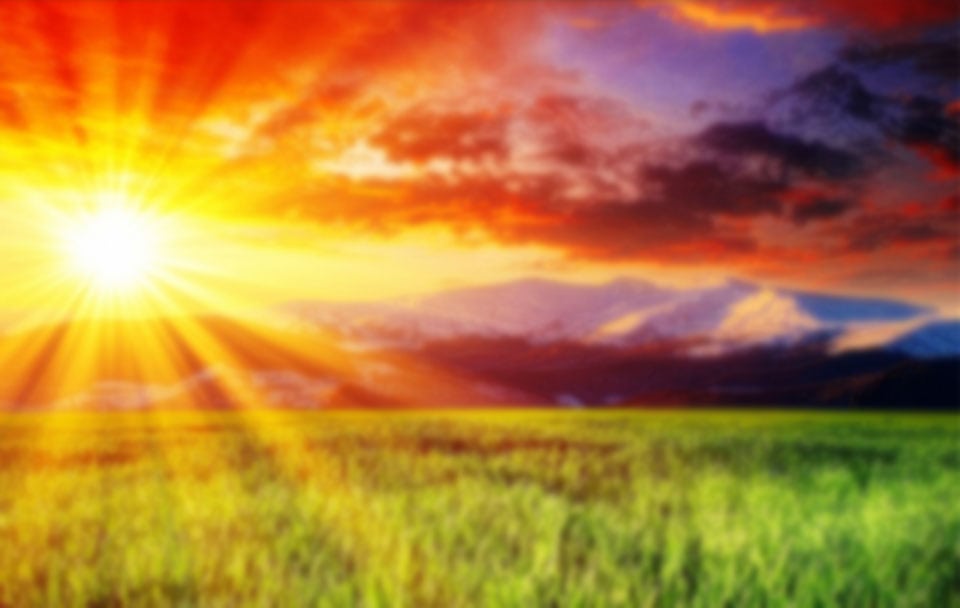 Blue sky with a green field
