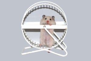 White hamster in wheel