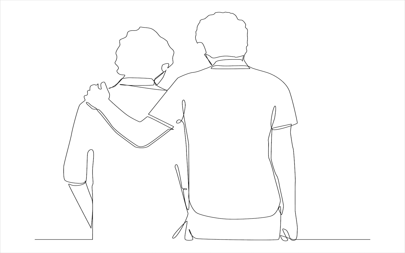 Continuous one line art of two men stand side by side and one put his hand on the other. Concept male hug, friendship, love, brotherhood. October 11, 2025 | Comments are closed.