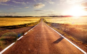 Road trip concept and sunset