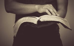 Vintage tone of man reading the Holy Bible.