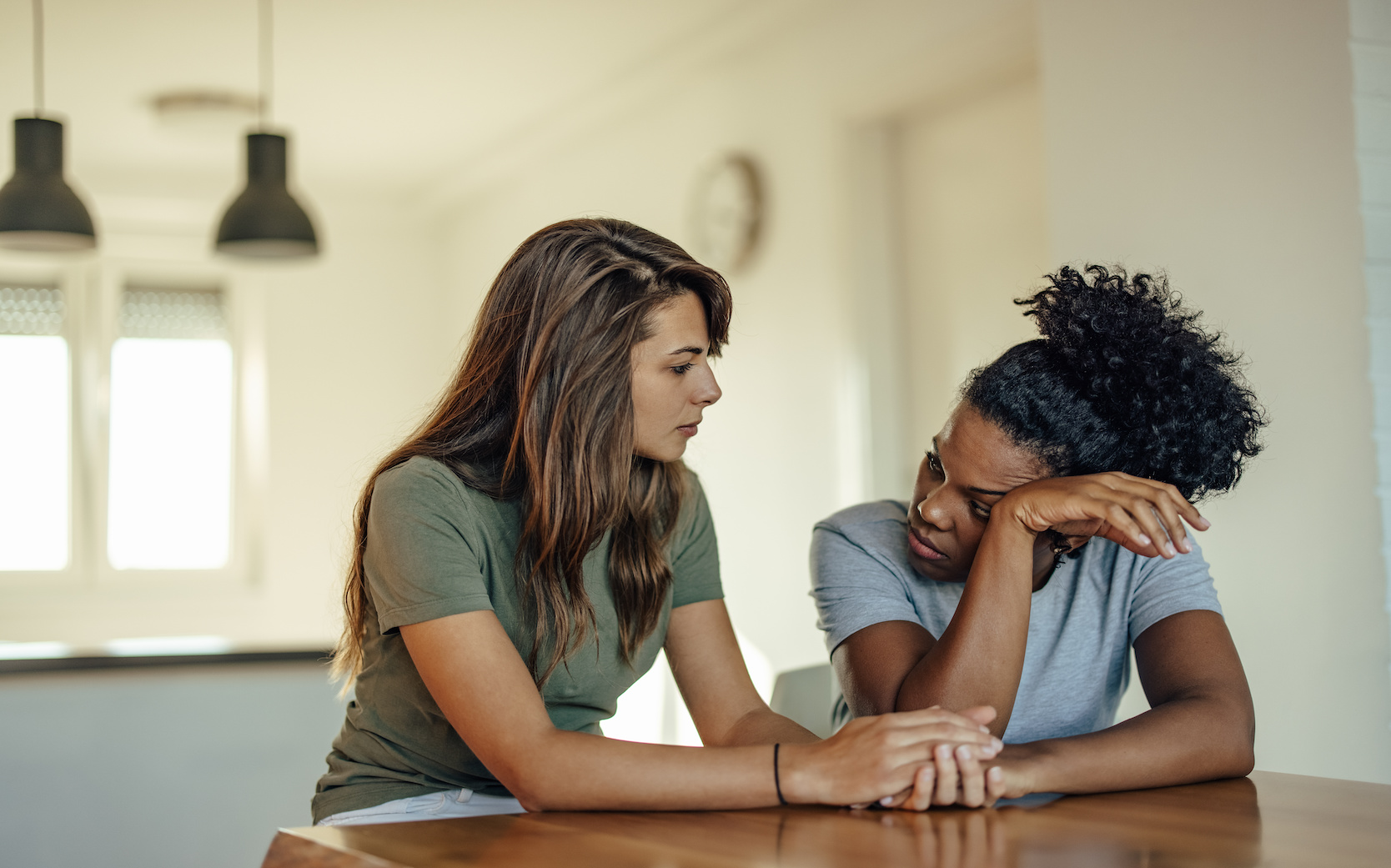 Caucasian woman, offering to listen to her friend