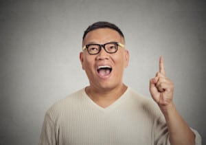 man has an idea, pointing with finger up