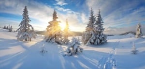 Frosty morning in the mountains. Panorama of winter mountains. Ukraine, Carpathians