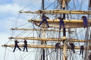 Sailors in the mast of an ancient teaching ship, during the tall ships race in Antwerp in 2006