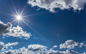 Dramatic blue sky with clouds and sun