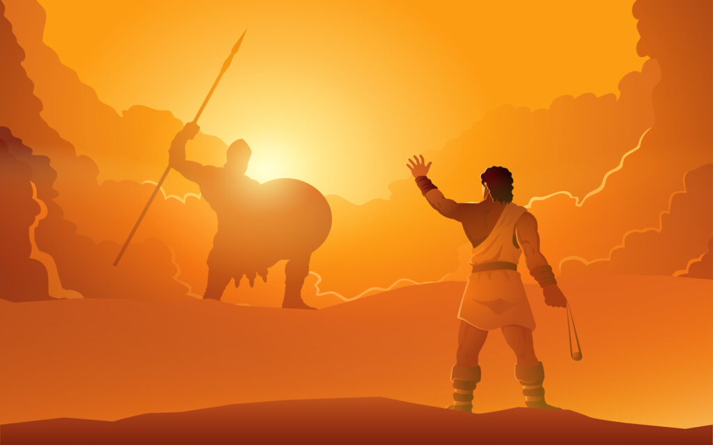In the story of David and Goliath in the Bible, Goliath is a behemoth of a man, a mighty warrior and soldier that enemies feared. David was a quiet shepherd boy of small stature, accustomed to living in the wilderness and tending sheep.