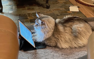 Let me explain the picture I posted today! I arise early each morning while it is quiet in the house to read the weekly Christian Science Bible Lesson on my tablet. Our cat, Zoey, loves to join me and keep