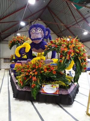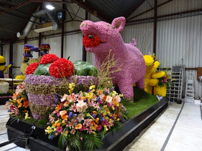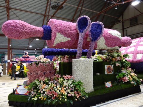 Every spring, there is a Bloom Festival parade viewed by hundreds of thousands of flower oglers lining the streets from one little town to the next up and down the coastal area of Holland. We didn’t view the parade, but we did get a preview of the floats the day before by touring the pavilion where the floats are constructed. What fun!