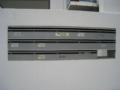 On my jaunt, I passed a collection of mail boxes that immediately caught my eye. On several post boxes were little plaques that read, “No Junk Mail Thank You.”