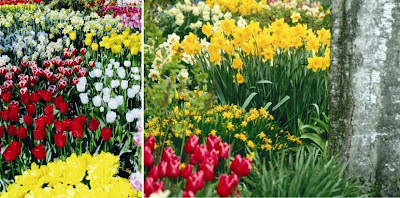 It looked as though someone had taken a great vat of gold and poured it over the mountain and its surrounding slopes. The flowers were planted in majestic, swirling patterns, great ribbons and swaths of deep orange, creamy white, lemon yellow, salmon pink, and saffron and butter yellow. Each different colored variety was planted in large groups so that it swirled and flowed like its own river with its own unique hue. There were five acres of flowers.