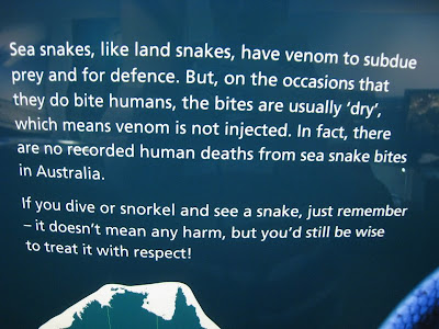 The below panel on sea snakes momentarily captivated my attention. I had never heard of a dry bite before.