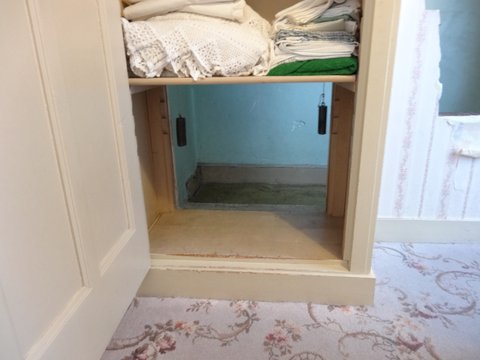 A local architect designed a secret trap door in Corrie’s bedroom closet to provide access to a slim space created behind the bedroom wall.