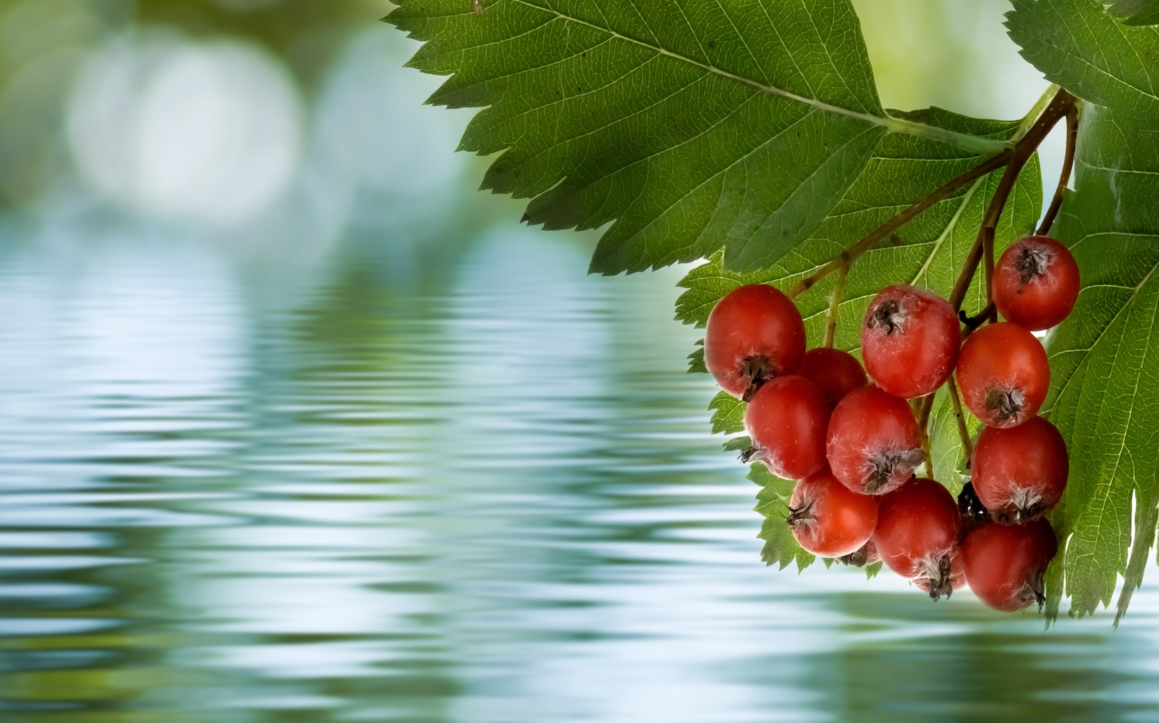 isolated image of hawthorn berries over water