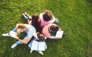 Students study sitting on green grass in a park in summer spring. April 29, 2025 | Comments are closed.