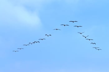 I am reminded of Mary Baker Eddy’s words, “Like brother birds that soar and sing, and on the same branch bend” One bird is not more important than another, but by “working” together, they are all benefited. One might see a food source, another spot danger, a third might find a warm place to nest for the night – the flock moves together, taking its cues from individual and collective inspiration. We just need to remember to give all the credit and glory to God.